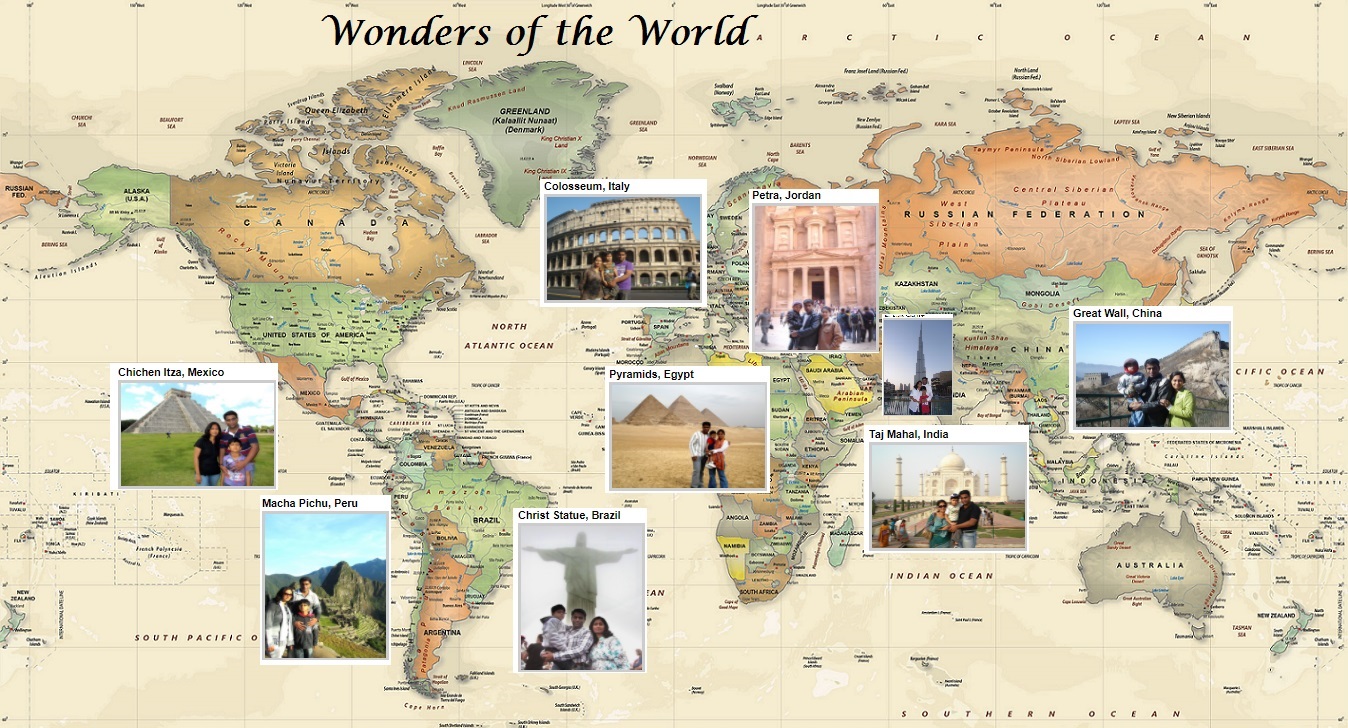 Lucky to have this opportunity to visit all the wonders of the Current World. Some of the others Wonders (Proposed, Ancient and Medieval) visited by us are :